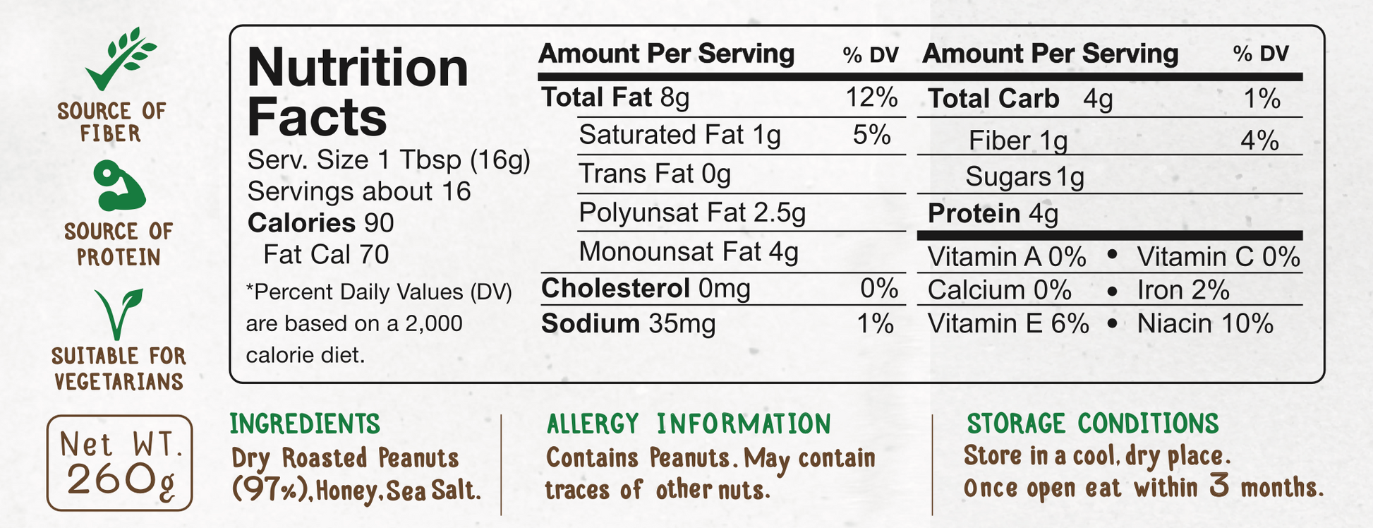 Dry Roasted Peanuts (97%), Honey, Sea Salt.