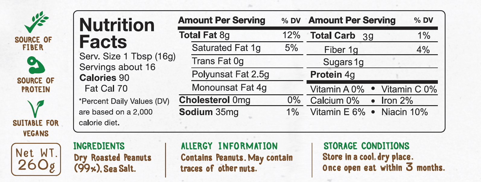 Creamy, Just Peanuts, Golden Roasted, Sprinkle of Sea Salt