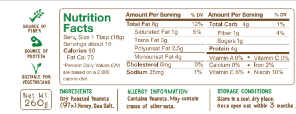 Dry Roasted Peanuts (97%), Honey, Sea Salt.